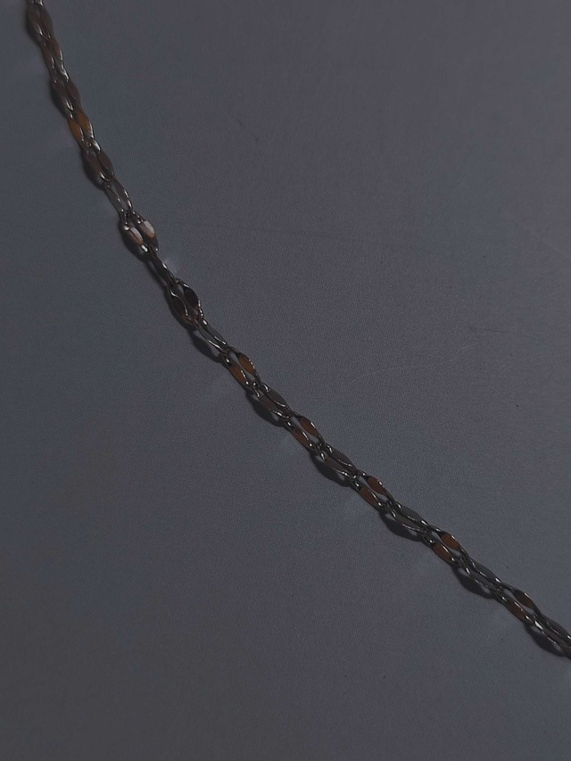 チェーンにはペタルチェーンを選び、木漏れ日のひらひらとした光の動きを映すように仕立てました。装いにそっと溶け込みながらも、見るたびに心を温める存在感。「木漏れ日」は、日常のなかに潜む静かな美しさをかたちにしたネックレスです。