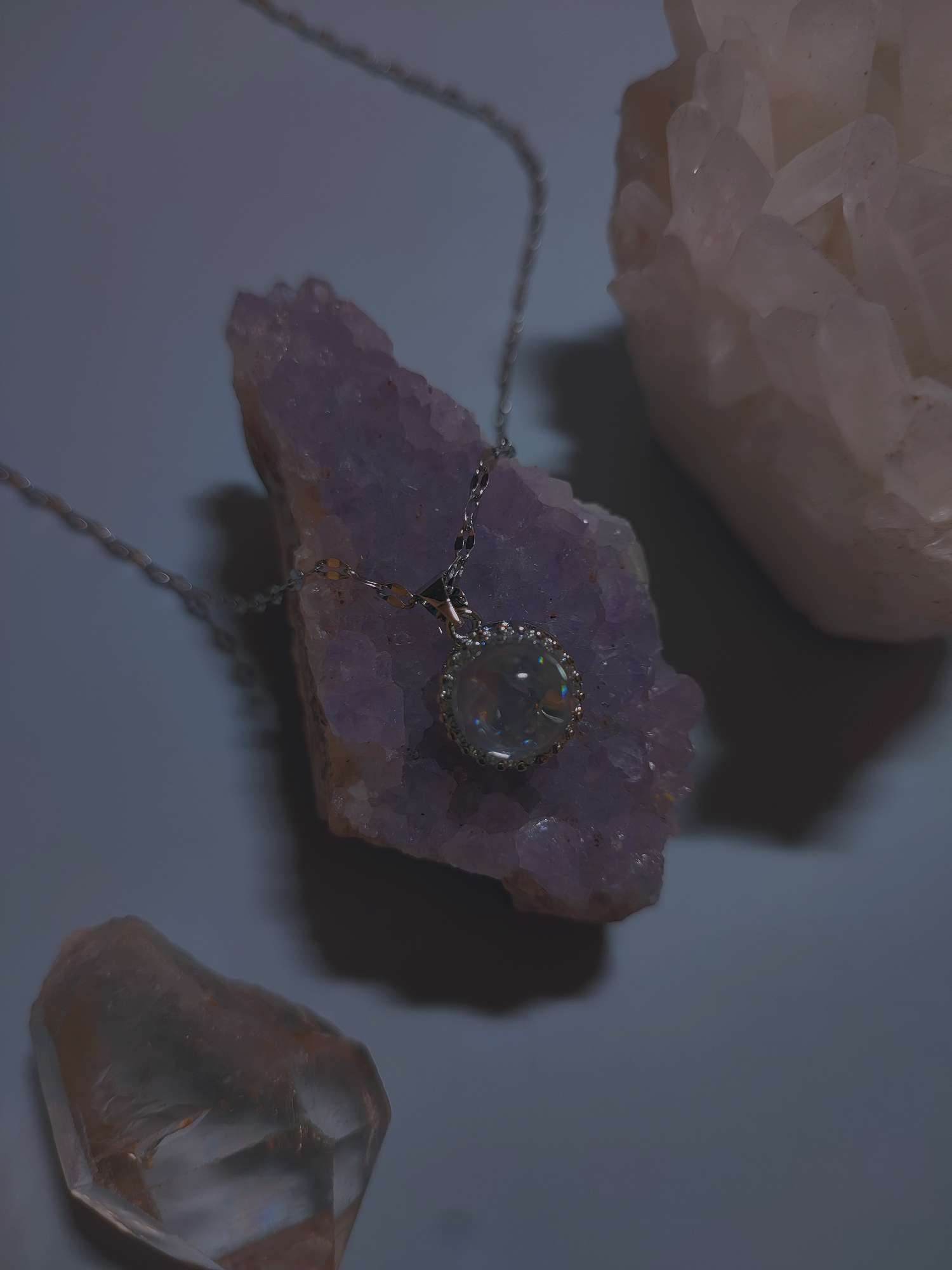 今回は耳飾りとセットでお使いいただけるように、透明感のある球体ガラスは光を受けて奥行きを生み、そばに寄り添うキュービックジルコニアが静かな輝きを添えます。