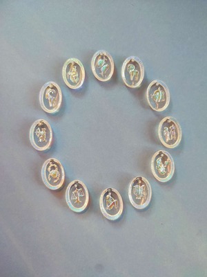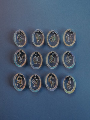 ネックレスにはラピスラズリのビーズを添えたステンレスチェーンを使用しています。古代から尊ばれてきた深い青が、12星座どのインタリオとも自然に調和し、冬の空気に似合う静かな存在感を添えてくれます。