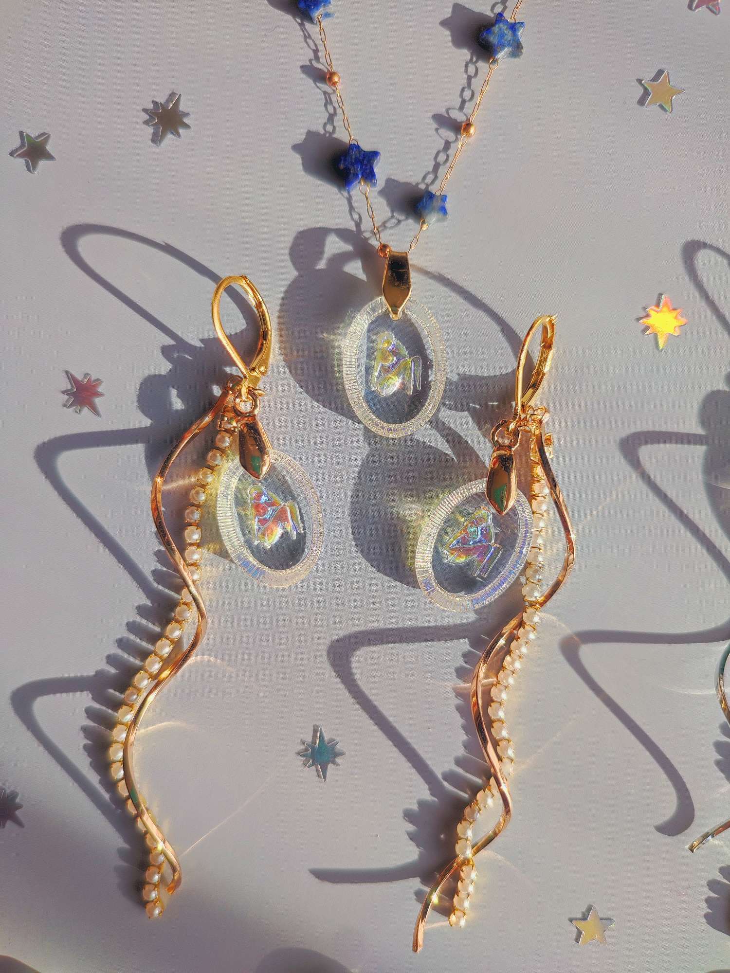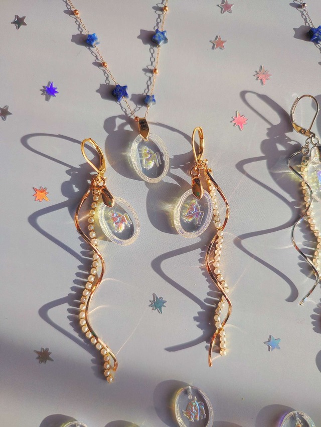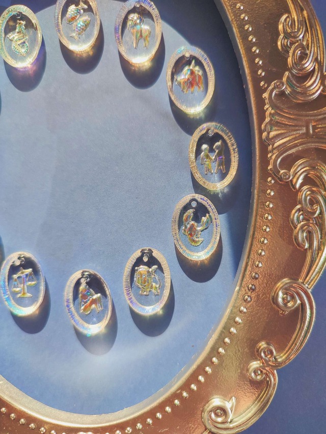 サンプルにはてんびん座を使用していますが、耳飾りのロングタイプも12星座すべてをご用意しおり、ゴールドとシルバーどちらもお選びいただけます。冬の光と重なるたび、星座の物語が静かに浮かび上がるシリーズです◎