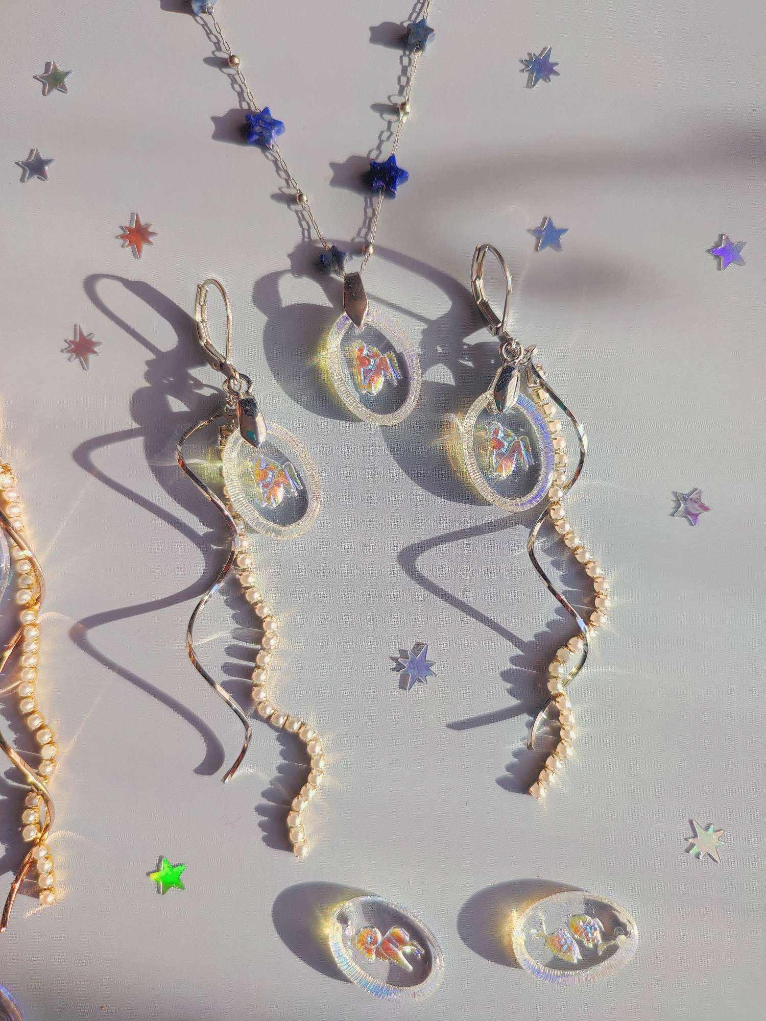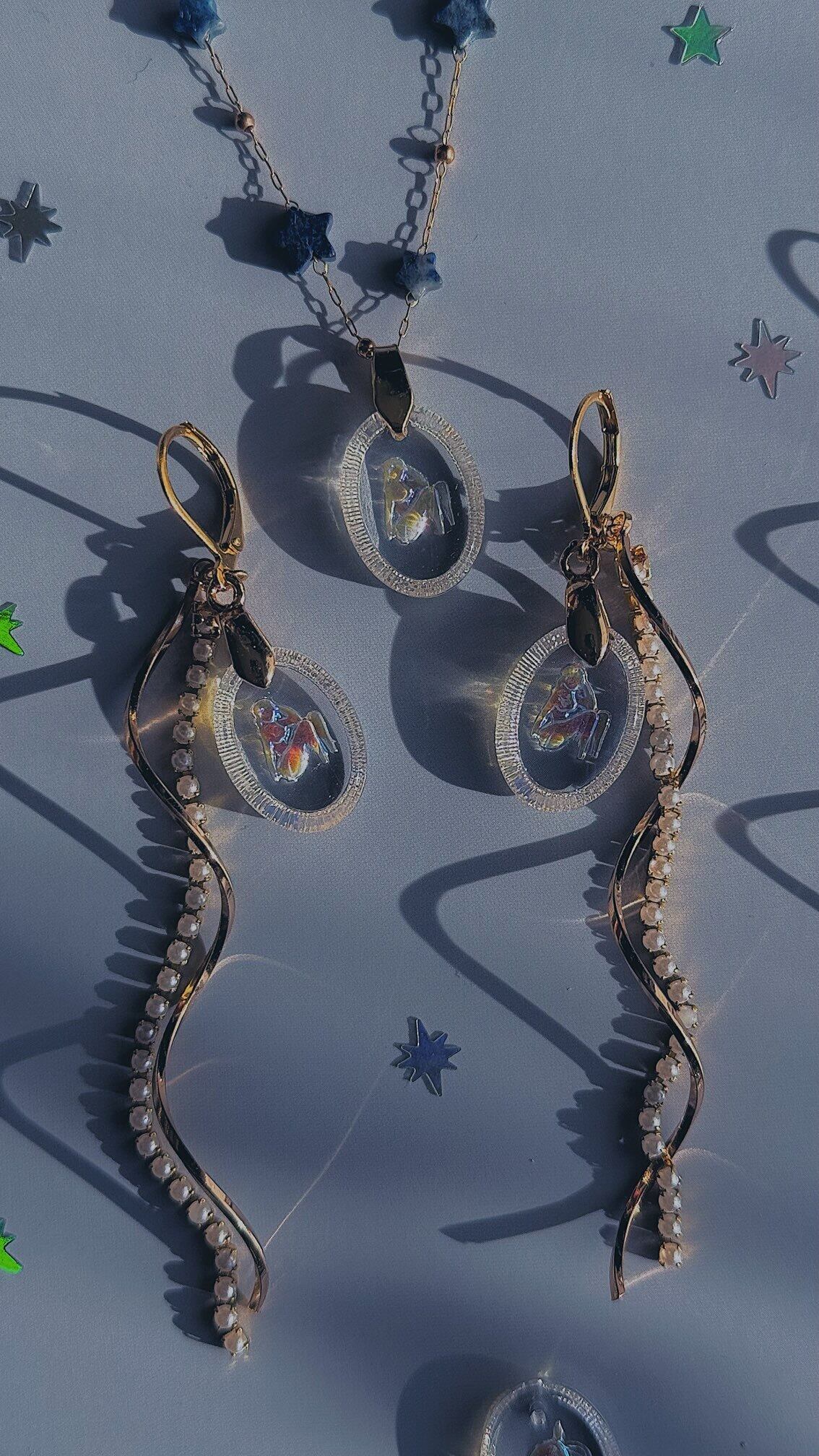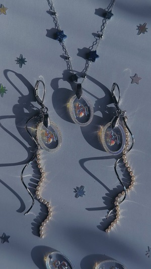 [サイズ]トップガラス18x13mm、耳飾り全長95mm、ネックレスチェーン40cm