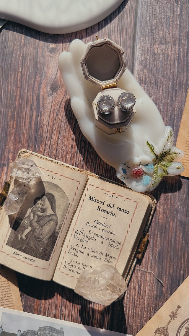 木漏れ日の名を冠したのは、強く主張する輝きではなく、ふとした瞬間に気づく光でありたかったからです。耳元で小さく揺れるたび、100年以上前のフランスの空気と、今の時間が静かに重なります。