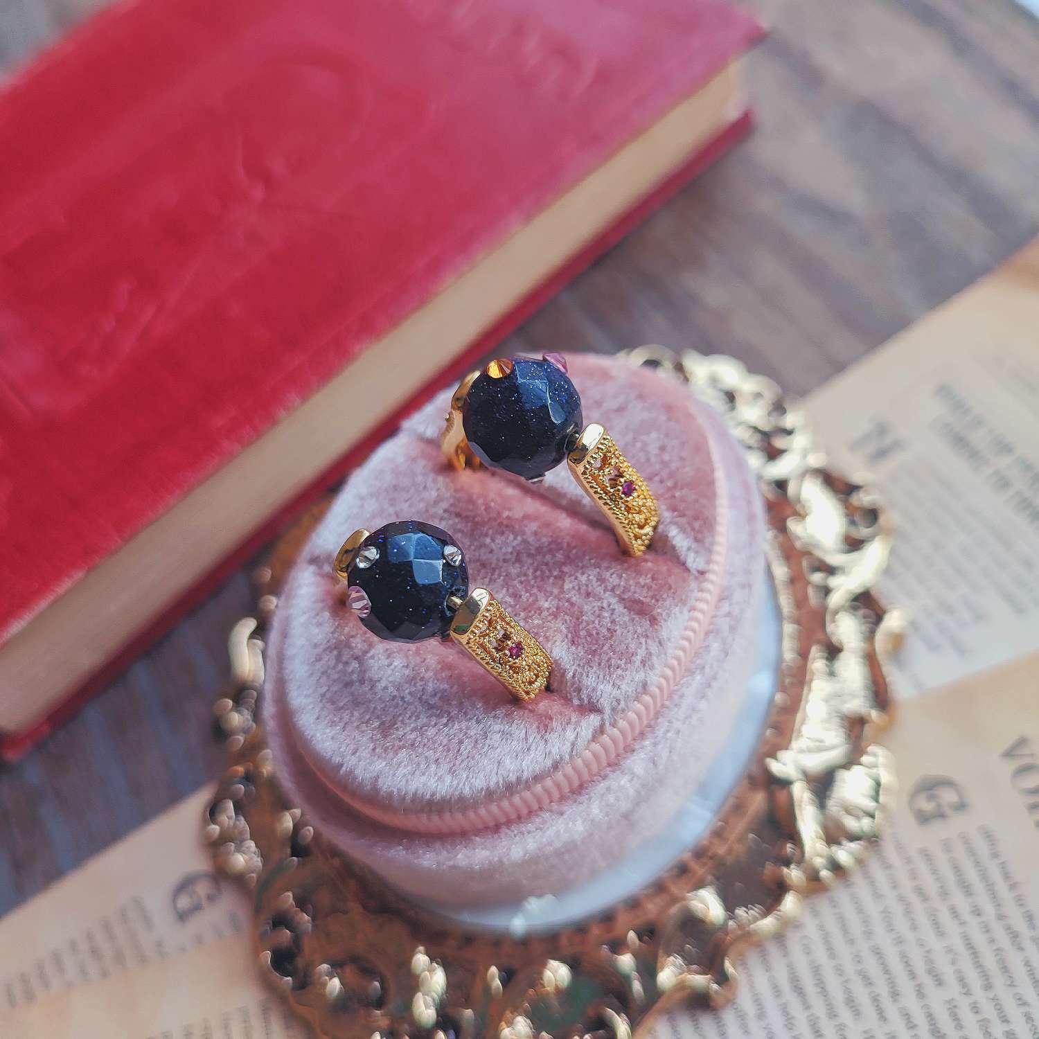 華やかすぎず、静かすぎない。ブルーサンドとスワロフスキー、そして回転という仕掛けが重なり合い、手元でゆっくりと役割を果たすリングです。日常の延長で、自然に選んでいただけたら嬉しいです。